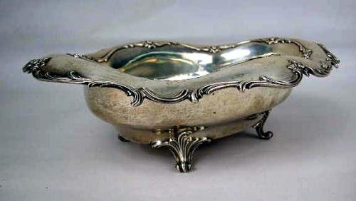 A GORHAM STERLING SILVER INVERTED FOOTED OVAL CENTERPIECE BOWL; With floral swag 11 1/2"l apx. 16 T.O