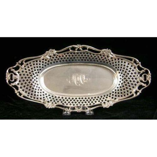 A GORHAM STERLING SILVER OVAL BREADTRAY<BR><BR>With centered monogram, 14"long, weight apx. 13 T.O.
