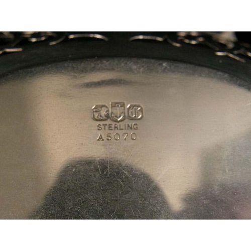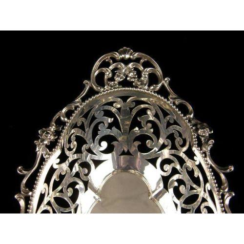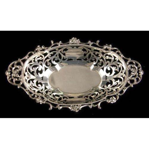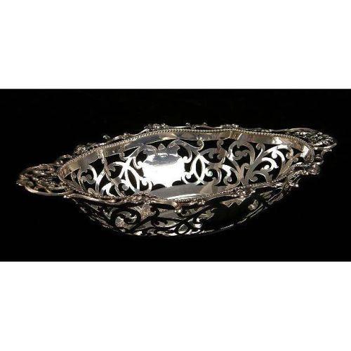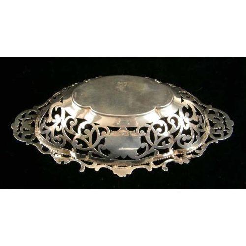 A GORHAM STERLING SILVER SHAPED OVAL DISH<BR><BR>#A5070, pierced sides, scroll-work border, 9"long, weight apx. 4 T.O.