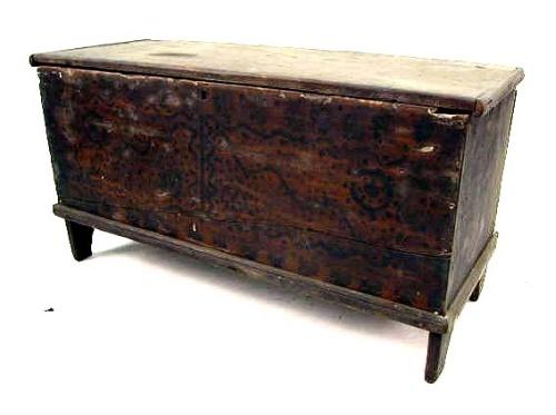 A GRAIN PAINTED PINE LIFT-TOP BLANKET CHEST; New York or New England, as found condition