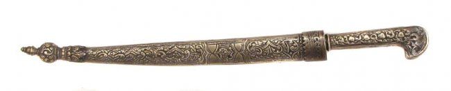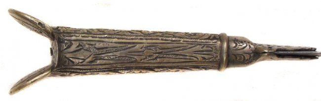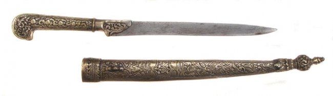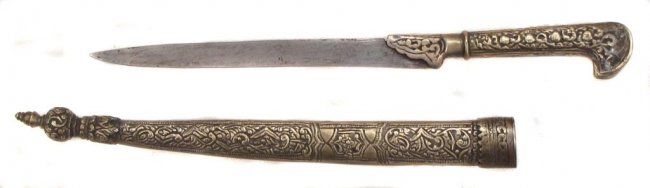 With embellished brass mounts and steel, single-edged blade.Mid-19th century. Light wear. Overall length 35.9 cm.