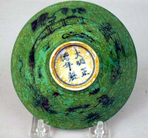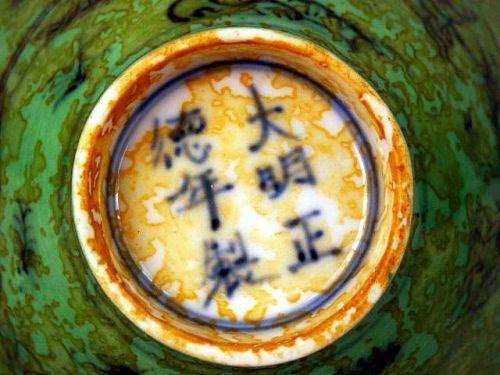 Chinese, the underside bears six characters. 2 1/2"h x 5"dia.