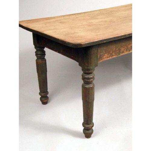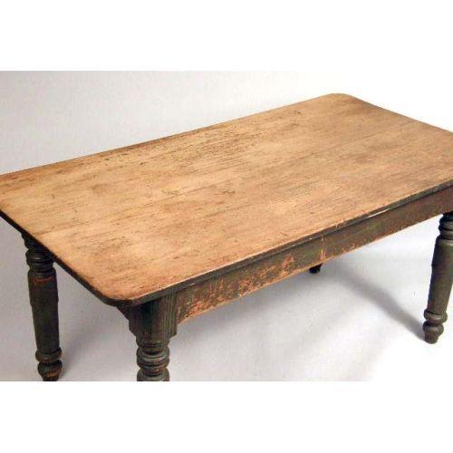 A GREEN-PAINTED OAK AND PINE "FARM" TABLE<BR><BR>American, distressed, 29-1/2"h x 5`1"l x 32"d