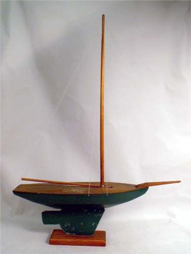 Lacks sails, some repairs, losses, and replacements. 40"h x 30"w. Together with a pine stand and an oil on canvas board depicting an American ship, unsigned, 8 1/2"h x 11 1/2"w. 3 pieces.