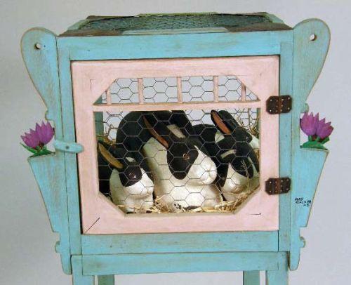 The cage and figures signed "Mark Kluck, `88" 4`h x 20"w x 15"d