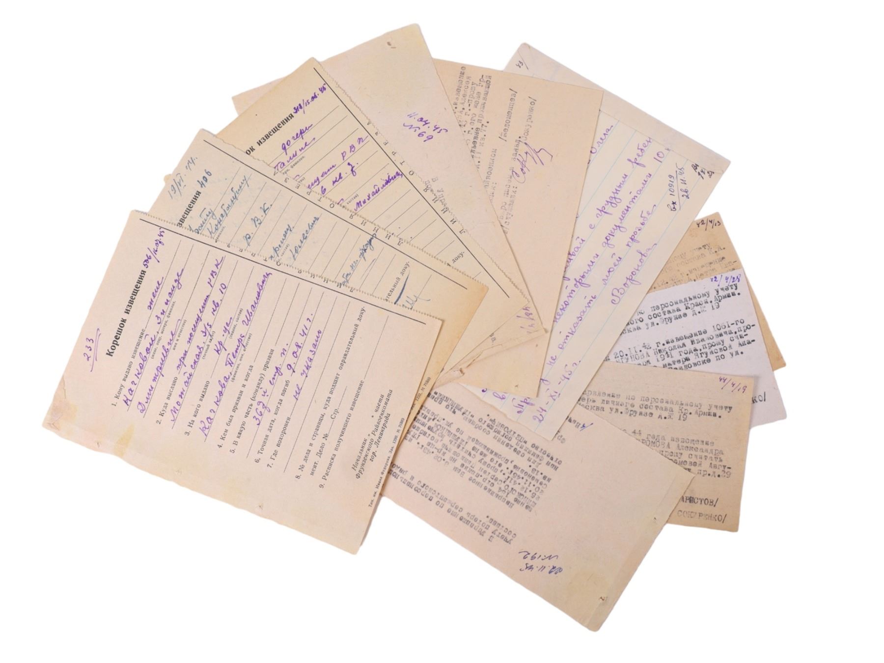 Ten Soviet Red Army letters sent to families of soldiers who were killed in action during the war. Some referring to the soldiers as having 'passed away from wounds'.