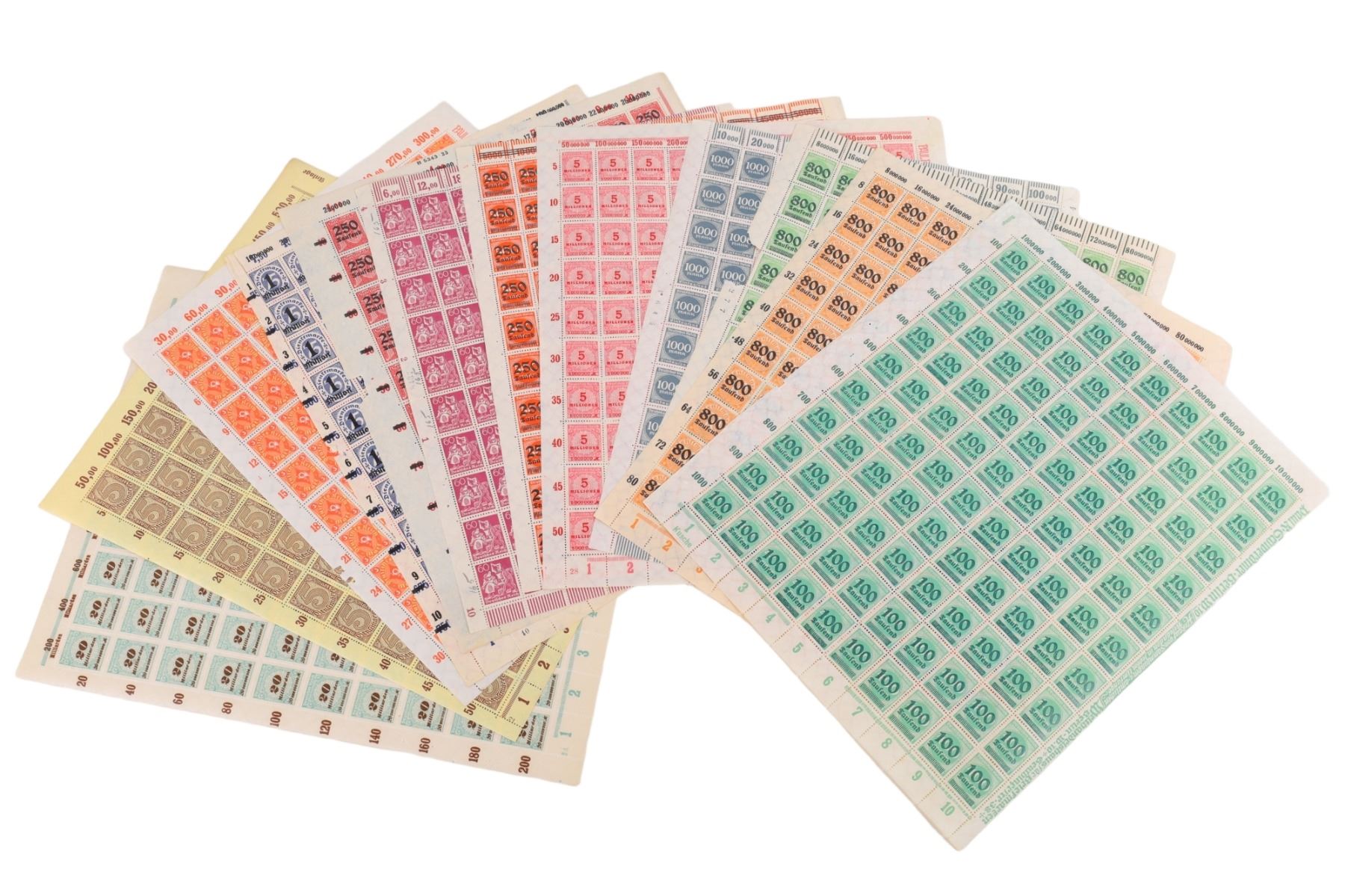 A GROUP OF 12 SHEETS OF GERMAN THIRD REICH STAMPS, 1930S