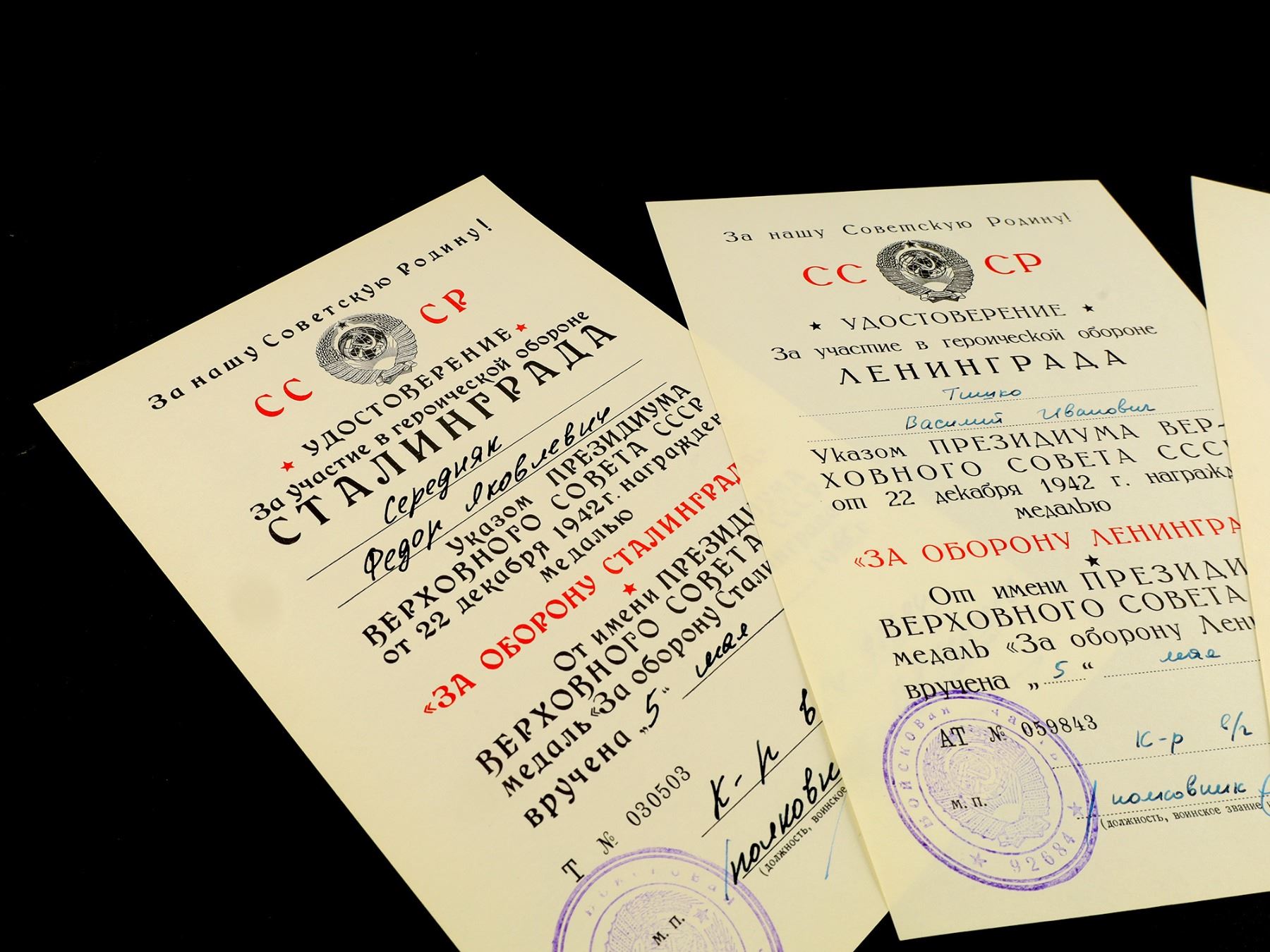 A group of 3 citations for the defense of Stalingrad, Leningrad, and the Caucasus during WW2.