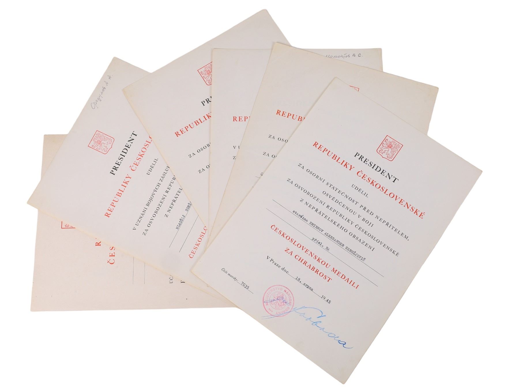 A GROUP OF 6 CZECHOSLOVAKIAN WW2 AWARD CITATIONS ISSUED TO RED ARMY PERSONNEL