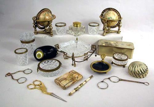A GROUP OF ASSORTED COLORLESS GLASS AND ORMOLU- MOUNTED DESK TOP ARTICLES;