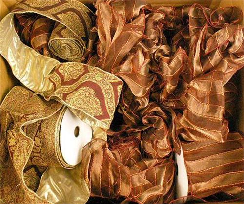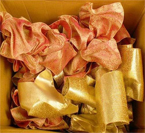 Including, red, green, gold, and pink varieties, some on spools, some pre-cut