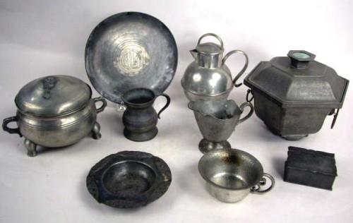 A GROUP OF ASSORTED NEKRASSOFF PEWTER TABLE ARTICLES;