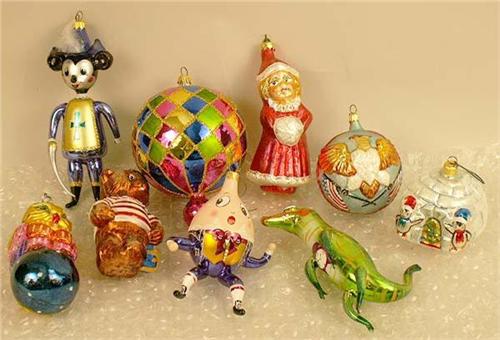 A GROUP OF ASSORTED PAINT-DECORATED FIGURAL GLASS CHRISTMAS ORNAMENTS