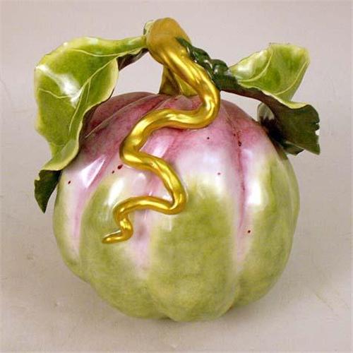 Comprising, two of melon-form, one a floral example, an asparagus, mushroom, and strawberry sculpture, signed Kho `95, U.S.A. Together with a glass bowl and vase