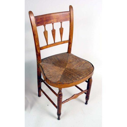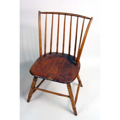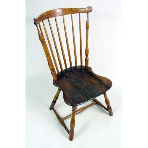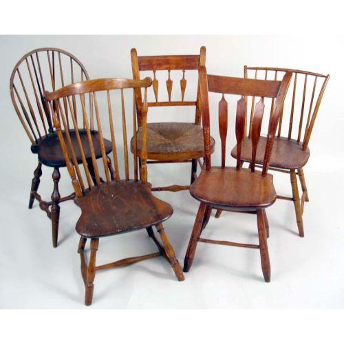 A GROUP OF ASSORTED SIDE CHAIRS<BR><BR>comprising two fan- and one bowback Windsor, and two splat-back examples. The tallest 36" high. 5 pieces.
