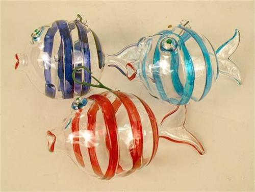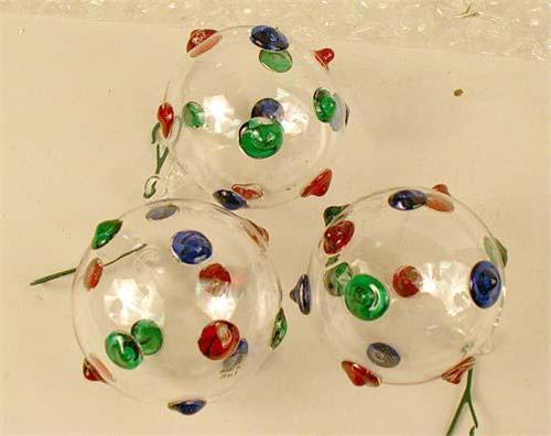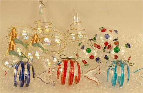 Including, fish, pear, spherical -form, polychrome button glass bulbs, some marked "Made in Italy" Approximately 39 pieces