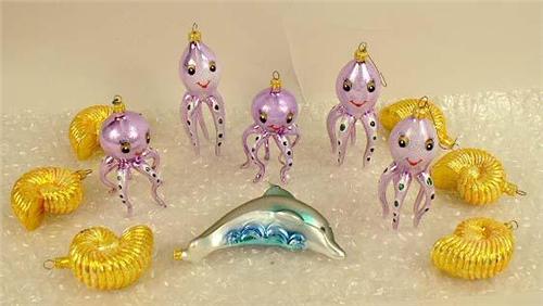 Including, Christopher Radko, octopus, dolphin, and gilt nautilus shells, Approximately 35 pieces