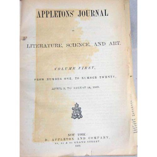 A GROUP OF BOOKS ABOUT 19TH CENTURY U.S. HISTORY<BR><BR>including bound copies of "Appleton`s Journal of Literature, Science and Art", Vol I. from April 3, 1869 to August 14, 1869, Vol II. from July 2 - December 31, 1870