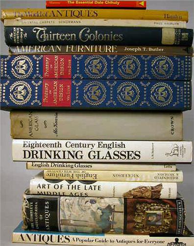 A GROUP OF BOOKS ON ANTIQUES, GLASS, AND FURNITURE; Approximately twelve volumes