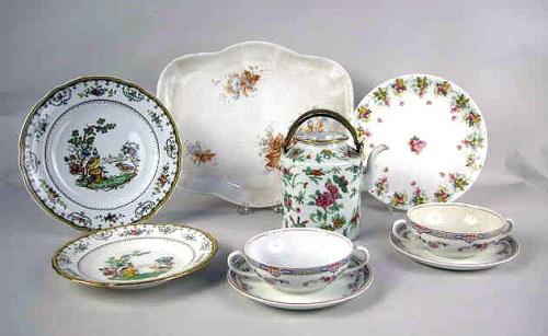 A GROUP OF CHINA; Including Copeland Spode "Chelsea" plates, 9"diameter and 7 1/2"diameter, double-handled cups, platter and one teapot