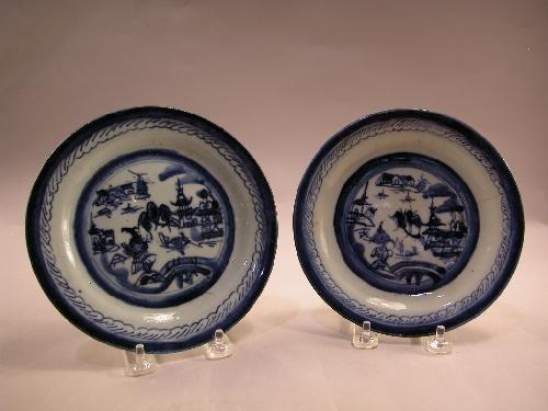 A GROUP OF CHINESE EXPORT PORCELAIN TABLEWARE; Canton pattern, Including rice bowls, saucers and small plates, (losses), 5"dia. to 7-1/2"dia.