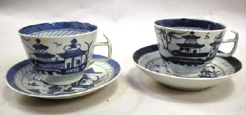 A GROUP OF CHINESE EXPORT PORCELAIN TEA CUPS AND SAUCERS; Canton pattern, including eleven saucers and six cups (losses)
