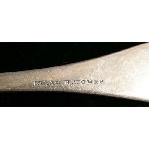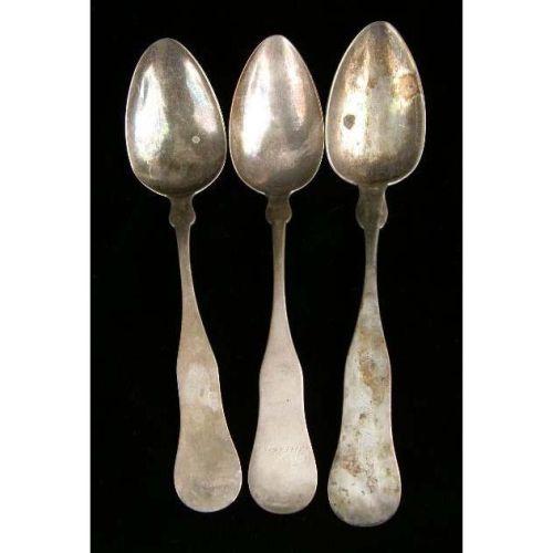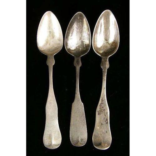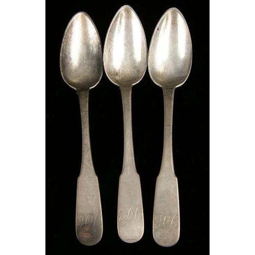 A GROUP OF COIN SILVER SPOONS<BR><BR>Various makers, comprising 9 tablespoons, and 19 teaspoons, weight apx. 23 T.O., dented