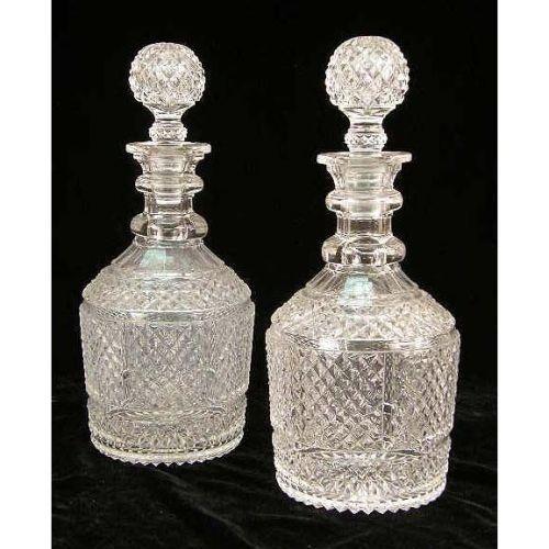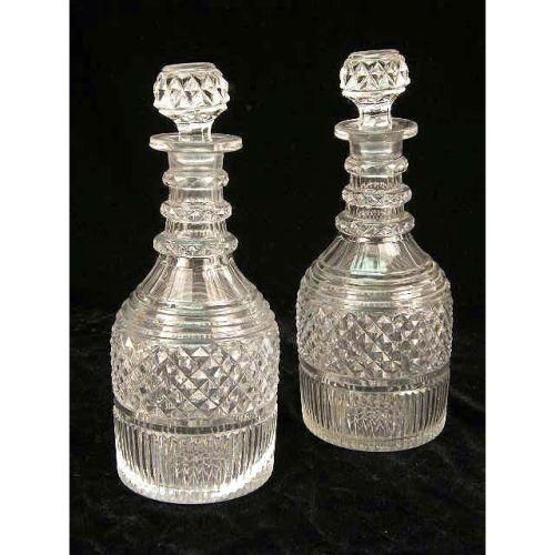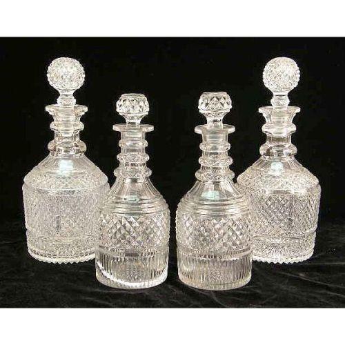 A GROUP OF COLORLESS GLASS STOPPERED DECANTERS<BR><BR>Wear and losses, 4 pieces