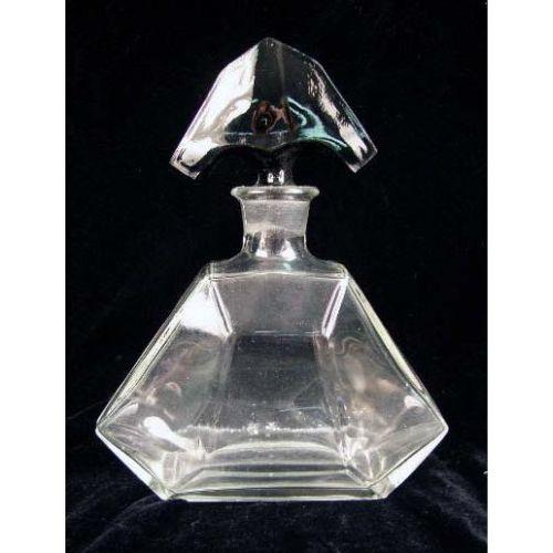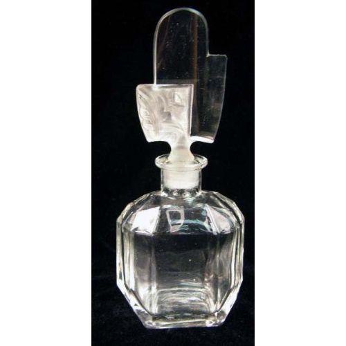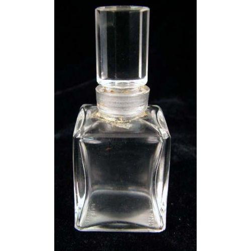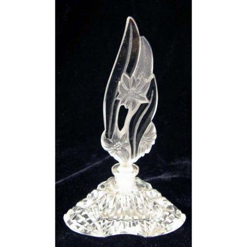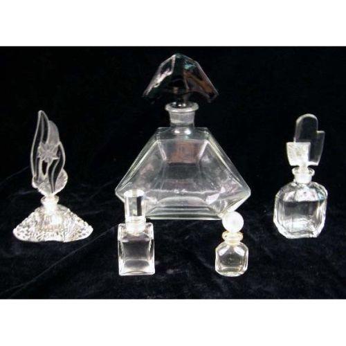 A GROUP OF COLORLESS GLASS TABLE ARTICLES<BR><BR>Purchased in Czechoslovakia, comprising, a decanter with an onyx stopper and four perfume bottles with stoppers, wear and losses, 7 3/4"h