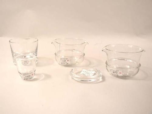 A GROUP OF COLORLESS GLASS; Including two rinsers, a Baccarat vase and a Steuben ashtray and cigarette holder