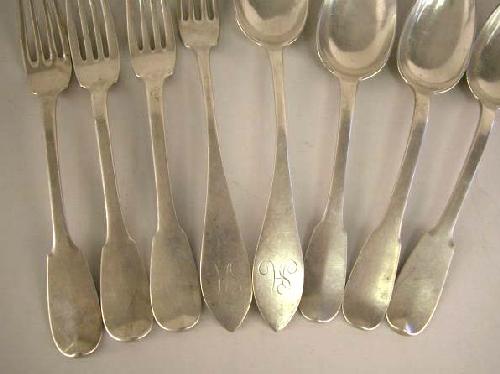 A GROUP OF CONTINENTAL SILVER FLATWARE; Comprising: eight tablespoons and five place forks, longest 8-3/4"l, total apx. 23 T.O.