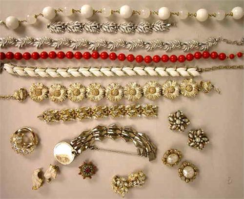 A GROUP OF COSTUME JEWELRY INCLUDING TRIFARI;