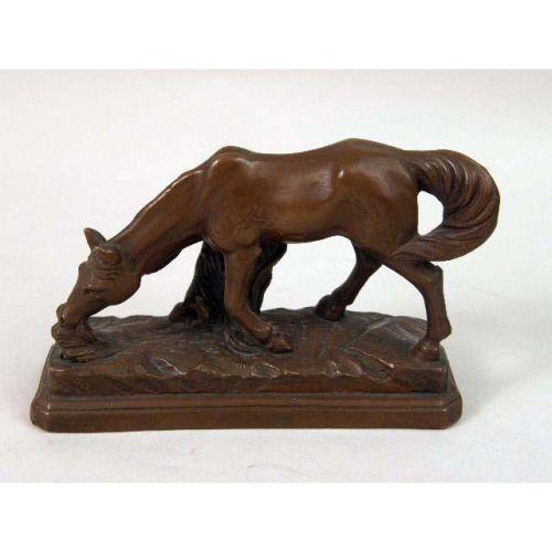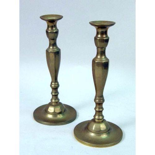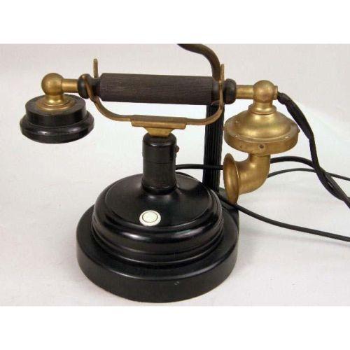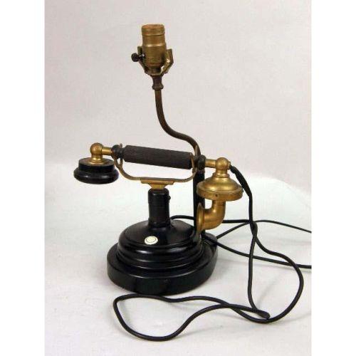 A GROUP OF DECORATIVE OBJECTS<BR><BR>Comprising, a pair of Victorian style brass candlesticks, an old telephone mounted as a lamp, an hour glass, a composition figure of a horse, and a composition wall plaque with an English crest 7 pieces
