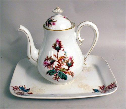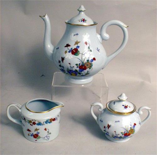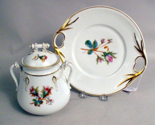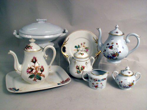 Including an antique tea pot, a covered sugar bowl, a double handled cake plate and a similar tray, a Vista Allegre Mottahedah sugar bowl, cream jug, and teapot, and a covered vegetable dish.