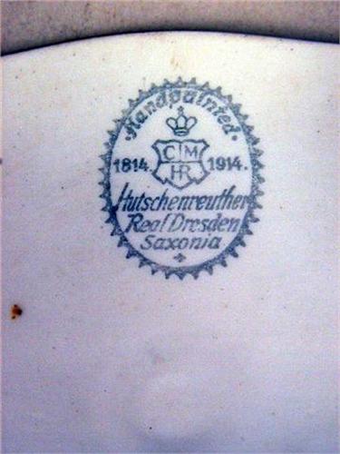 Stamped on verso, "Hutschenreuther Real Dresden, Saxonia," 1 3/4"h x 3 3/4"w