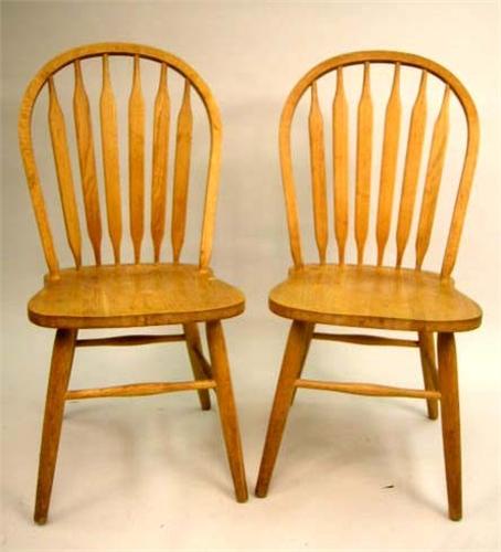 A GROUP OF EIGHT OAK WINDSOR SIDE CHAIRS; The continuous back centering six arrow back spindles ending on tapering legs joined by stretchers 38 1/2"h