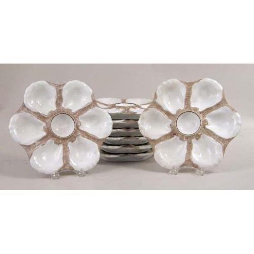A GROUP OF EIGHT PORCELAIN OYSTER PLATES<BR><BR>Chips, losses, 9 1/4"dia.