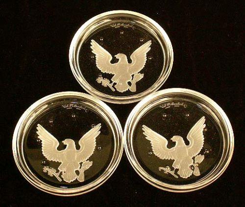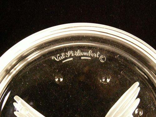 With eagle motif, marked "Val St. Lambert," in original boxes, 3 1/2"dia.