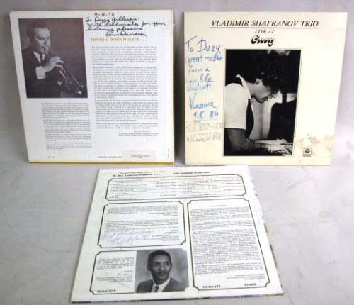 A GROUP OF FIVE AUTOGRAPHED RECORDS Comprising, Gerard "Dave" Pochonet and His French All Stars' "Swingin' in Paris", Yaffa Yarkoni's "Sabra", Dr. Roy Anderson, Jr.'s "Dr. Roy Anderson, Jr. Presents...The Famous Tyler Trio", Vladmir Shafranov Trio's "Live At Groovy", and Timofey Dokschutzer's "Trumpet", wear