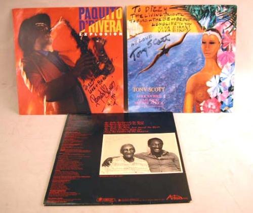 A GROUP OF FIVE AUTOGRAPHED RECORDS Comprising IgG Band's "Ultra Sound", George Clark's "Merhulho", Ralph MacDonald's "The Path", Tony Scott's "African Bird Come Back Mother Africa to the Spirit of Charlie Parker", and Paquito D'Rivera's "Explosion", wear