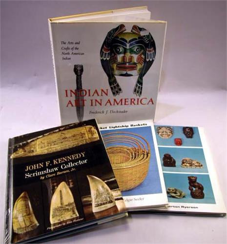 A GROUP OF FIVE BOOKS; Titled "The Netsuke of Japan, "Nantucket Lightship Baskets," "John F. Kennedy Scrimshaw Collector," "Oriental Rugs," and "Indian Art in America"