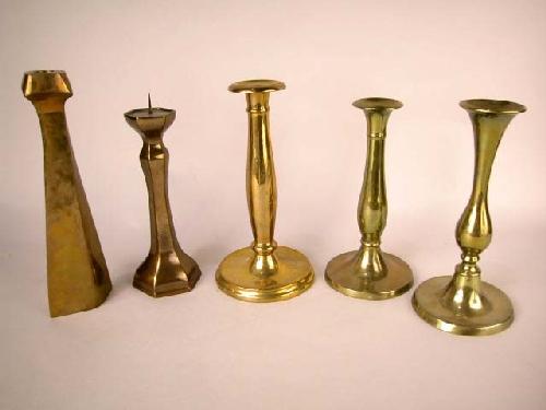 A GROUP OF FIVE BRASS CANDLESTICKS, CONTINENTAL; Tallest 10 1/4"