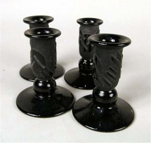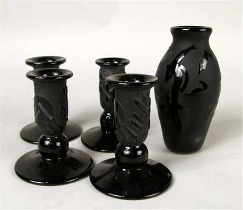 Comprising, four candlesticks and a vase, vase marked "Correia," candlesticks marked "Escsa,"