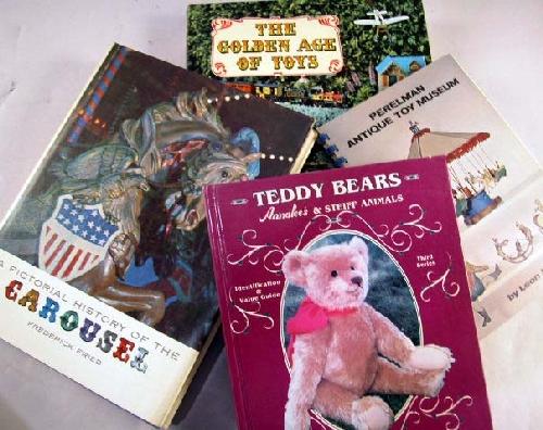 A GROUP OF FOUR BOOKS ABOUT TOYS; Titled "A Pictorial History of the Carousel," "The Golden Age of Toys," "Teddy Bears," "Perelman Antique Toy Museum"