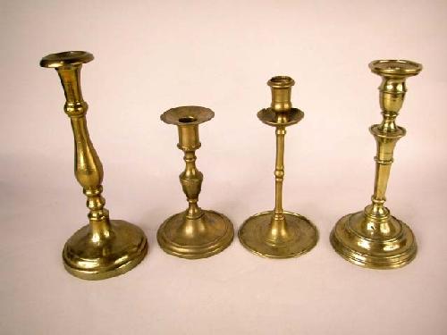 A GROUP OF FOUR BRASS CANDLESTICKS, CONTINENTAL; Tallest 10 1/4"h