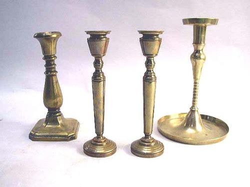 A GROUP OF FOUR BRASS CANDLESTICKS Continental, a