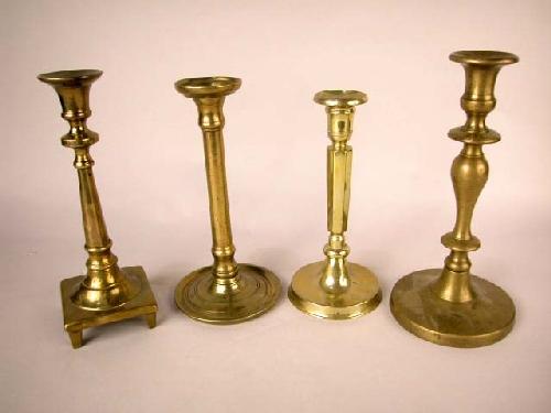 A GROUP OF FOUR BRASS CANDLESTICKS, EASTERN EUROPEAN;