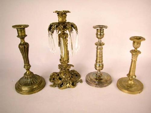A GROUP OF FOUR BRASS CANDLESTICKS, FRENCH; Tallest 9"h