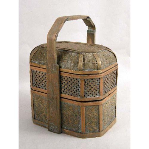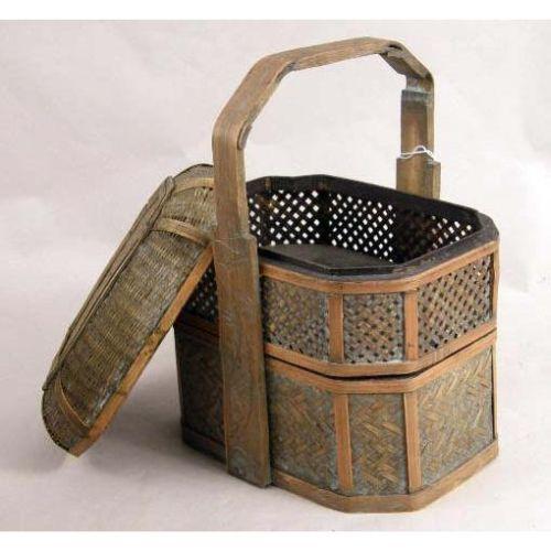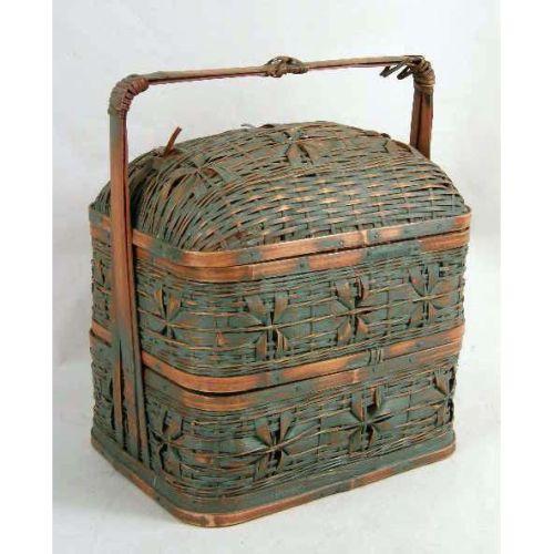 A GROUP OF FOUR CHINESE WOVEN LUNCH BASKETS<BR><BR>Fitted interior with three sections, one example larger, 12-1/2"h to 13"h