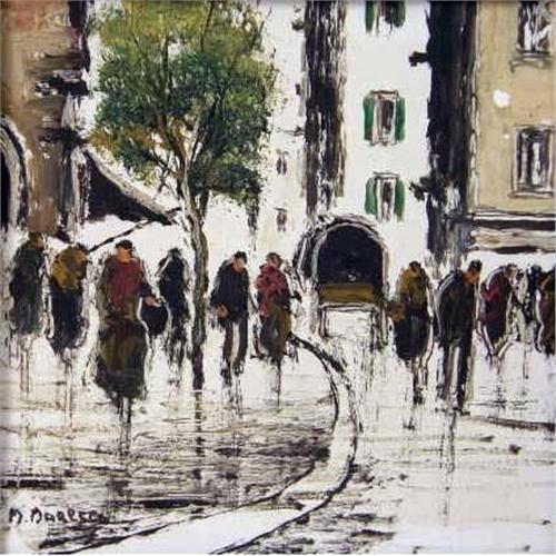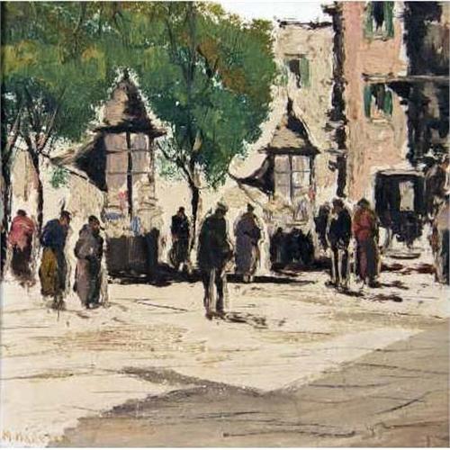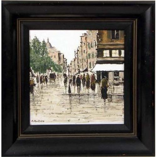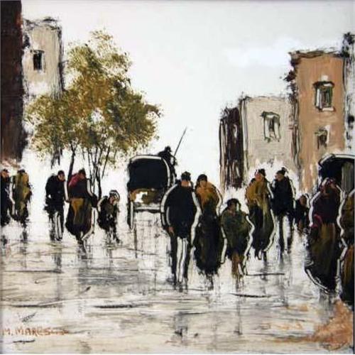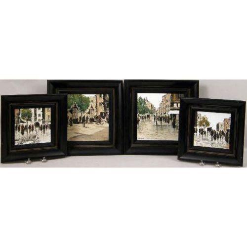 A GROUP OF FOUR FRAMED HANDPAINTED TILES<BR><BR>Depicting street scenes, bears signature "M. Marasca," from 5-1/4"h x 5-1/4"w to 7-1/2"h x 7-1/2"w